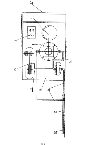 4.2啟動空氣壓縮機15,待壓縮機儲氣罐壓力達到0.6Mpa時,打開空氣壓縮機的出氣閥門經(jīng)高壓氣管19給氣動隔膜泵4送氣。
