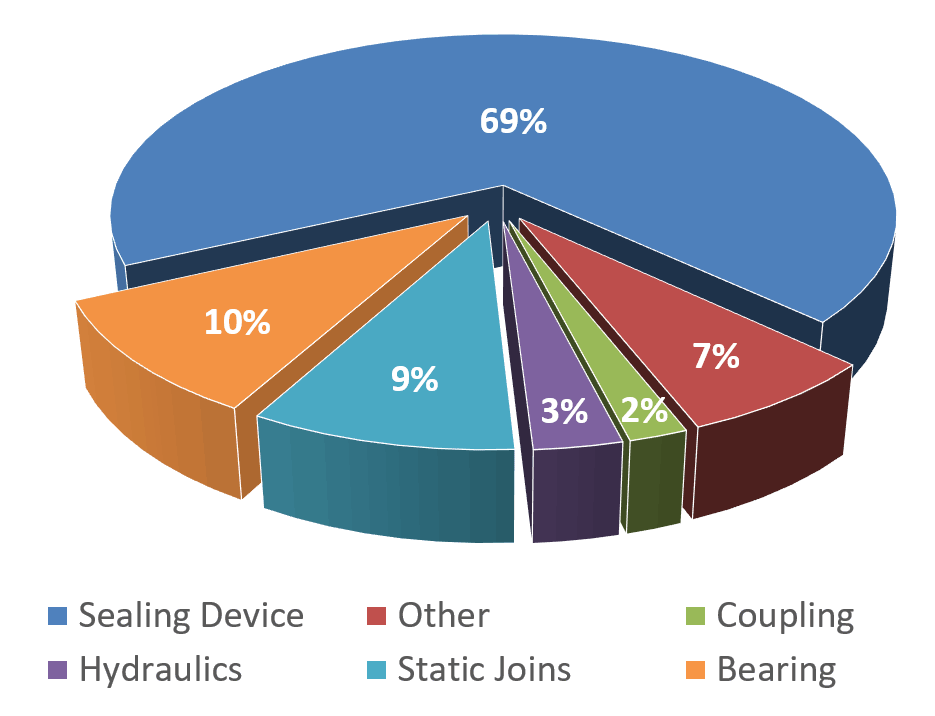 泵出現故障的原因有很多,但如下圖所示,超過三分之二的故障與密封裝置問題有關。隨著節約用水和減少需要處理的廢液數量的運動,該行業越來越依賴機械密封。隨著安裝人口的增長,直接由機械密封引起的泵故障的百分比也在增加。