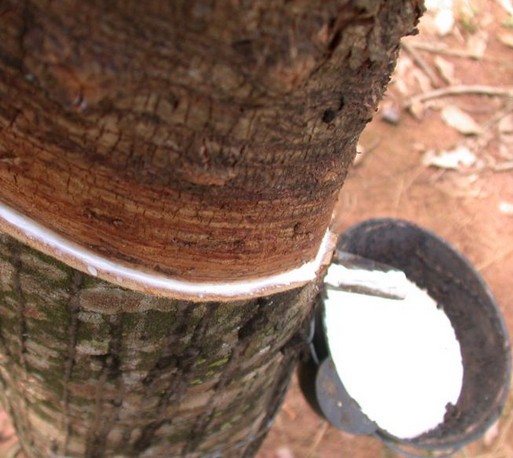 世界上約有2000種不同的植物可生產(chǎn)類似天然橡膠的聚合物,已從其中500種中得到了不同種類的橡膠,但真正有實(shí)用價(jià)值的是巴西三葉橡膠樹(shù)。橡膠樹(shù)的表面被割開(kāi)時(shí),樹(shù)皮內(nèi)的乳管被割斷,膠乳從樹(shù)上流出。從橡膠樹(shù)上采集的乳膠,經(jīng)過(guò)稀釋后加酸凝固、洗滌,然后壓片、干燥、打包,即制得市售的天然橡膠。天然橡膠根據(jù)不同的制膠方法可制成煙片、風(fēng)干膠片、縐片、技術(shù)分級(jí)干膠和濃縮膠乳等。