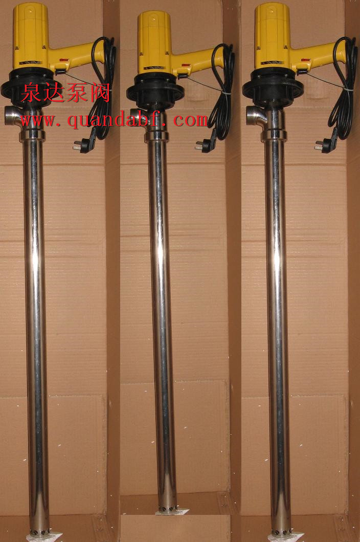 SB型電動油桶泵是泉達公司引進西德優(yōu)質樣機開發(fā)研制而成,各項技術指標均能達到樣機水平,并在樣機基礎上開發(fā)了不同的使用場合不同抽吸液體的系列派生產(chǎn)品,該系列抽液泵為輕便型管式軸流泵,具有效率高,使用、維修方便等特點。SB型油泵廣泛用于化工、石油化工、精細化工、染料化工、環(huán)保、水處理、醫(yī)藥、食品等部門抽吸不同液體。如在易燃易爆場合使用,可選用我公司生產(chǎn)的防爆型電動抽液泵。(SB-3型、SB-4型)使用油泵時應按CB38361-2《爆炸環(huán)境用防爆電氣設備》有關規(guī)定并正確使用防爆插頭插座。